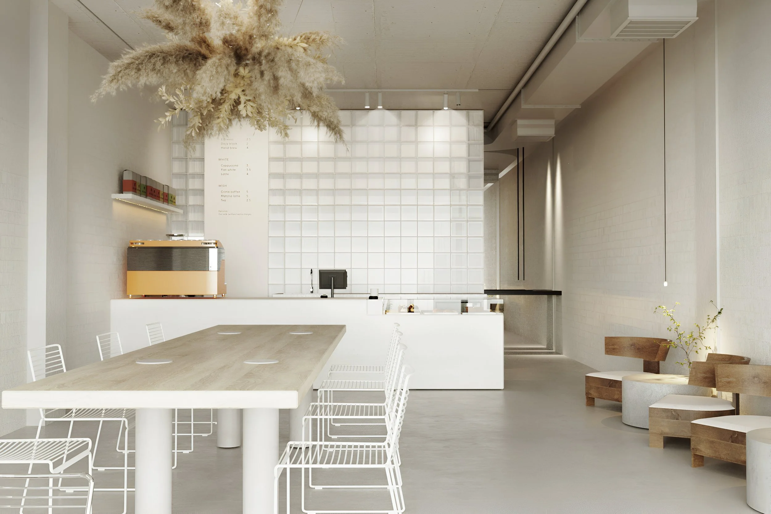The main task was to efficiently place the bakery, pastry display, and coffee area while maintaining a cozy and inviting atmosphere. Clean lines and minimal details emphasize the modern interior style, making it appealing to visitors. This project perfectly combines functionality and aesthetics, creating a space suitable for enjoying fresh pastries and aromatic coffee. The project was done in collaboration with Yurima Architects